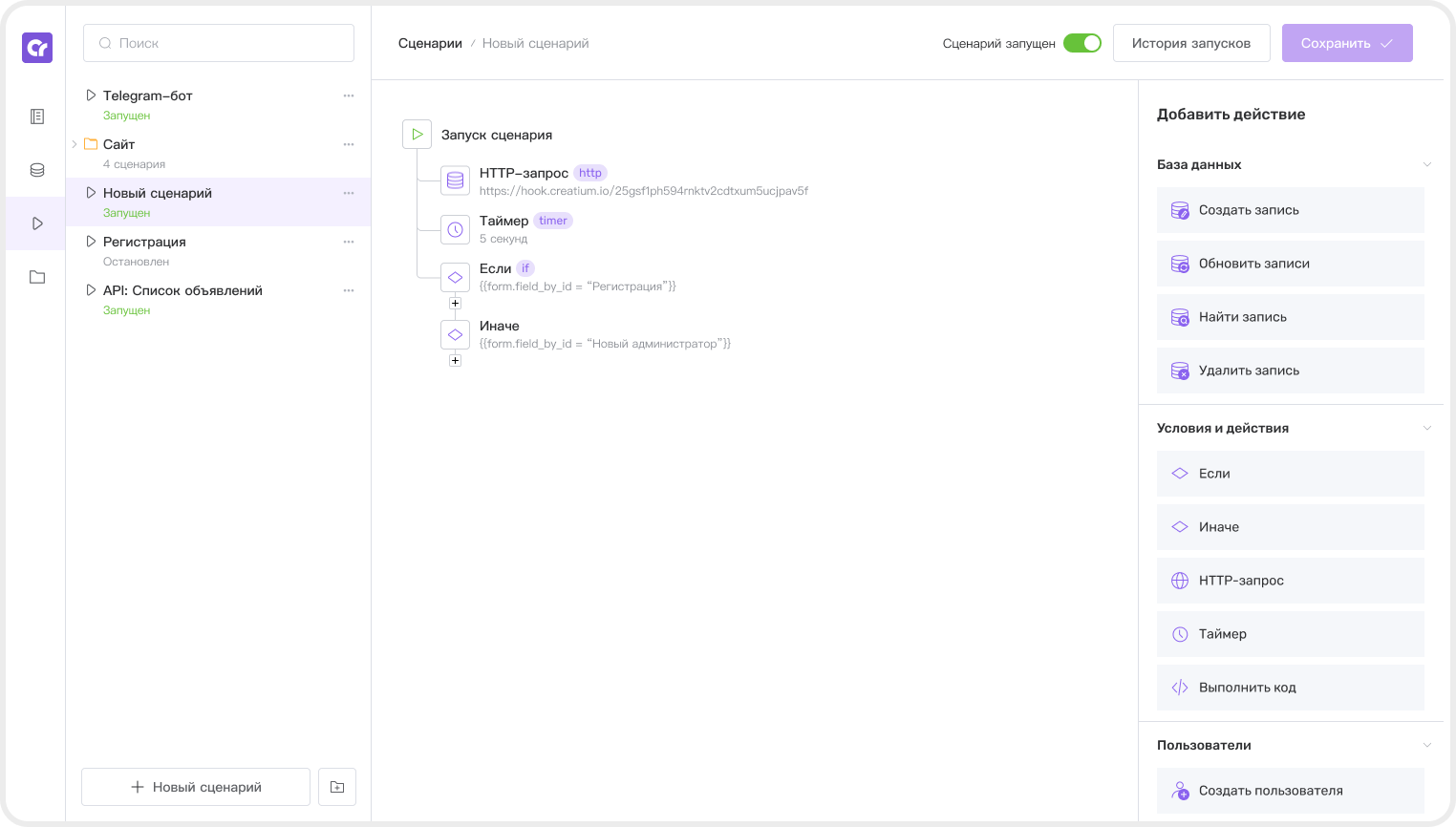 Мы не ограничиваем размер базы данных, количество выполненных действий в сценариях, как это делают другие No-code платформы.